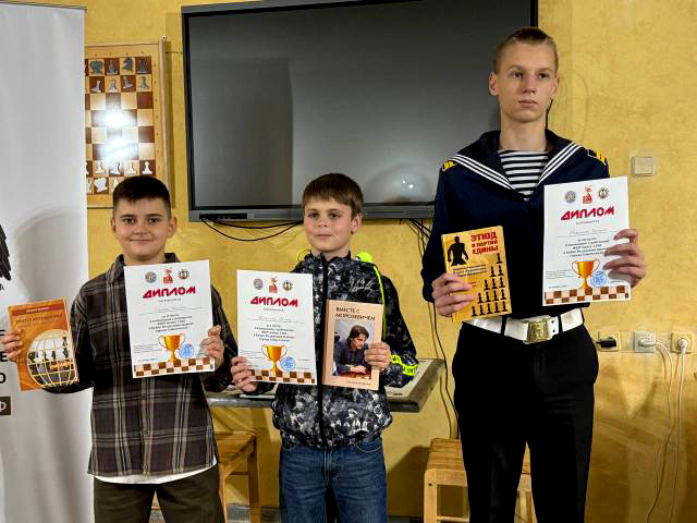 Среди участников с рейтингом ФШР менее 1300: 1 место Денис Шумаков, 2 место Никита Сухарь, 3 место Ярослав Кужелев (Р.Крым).