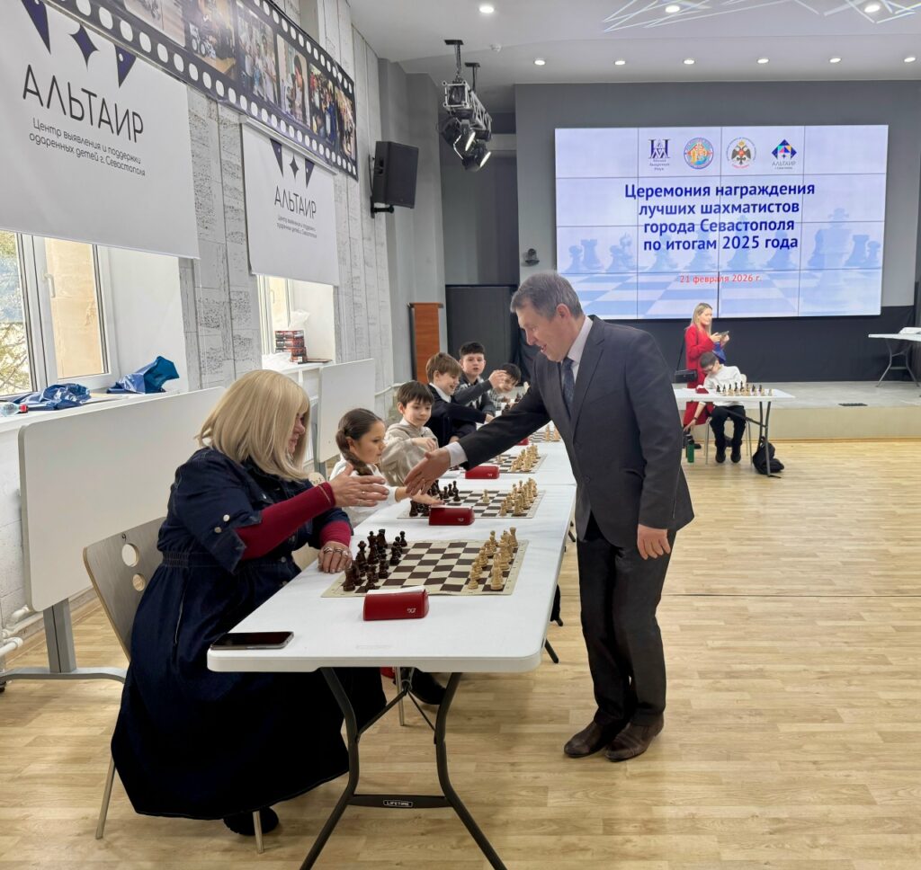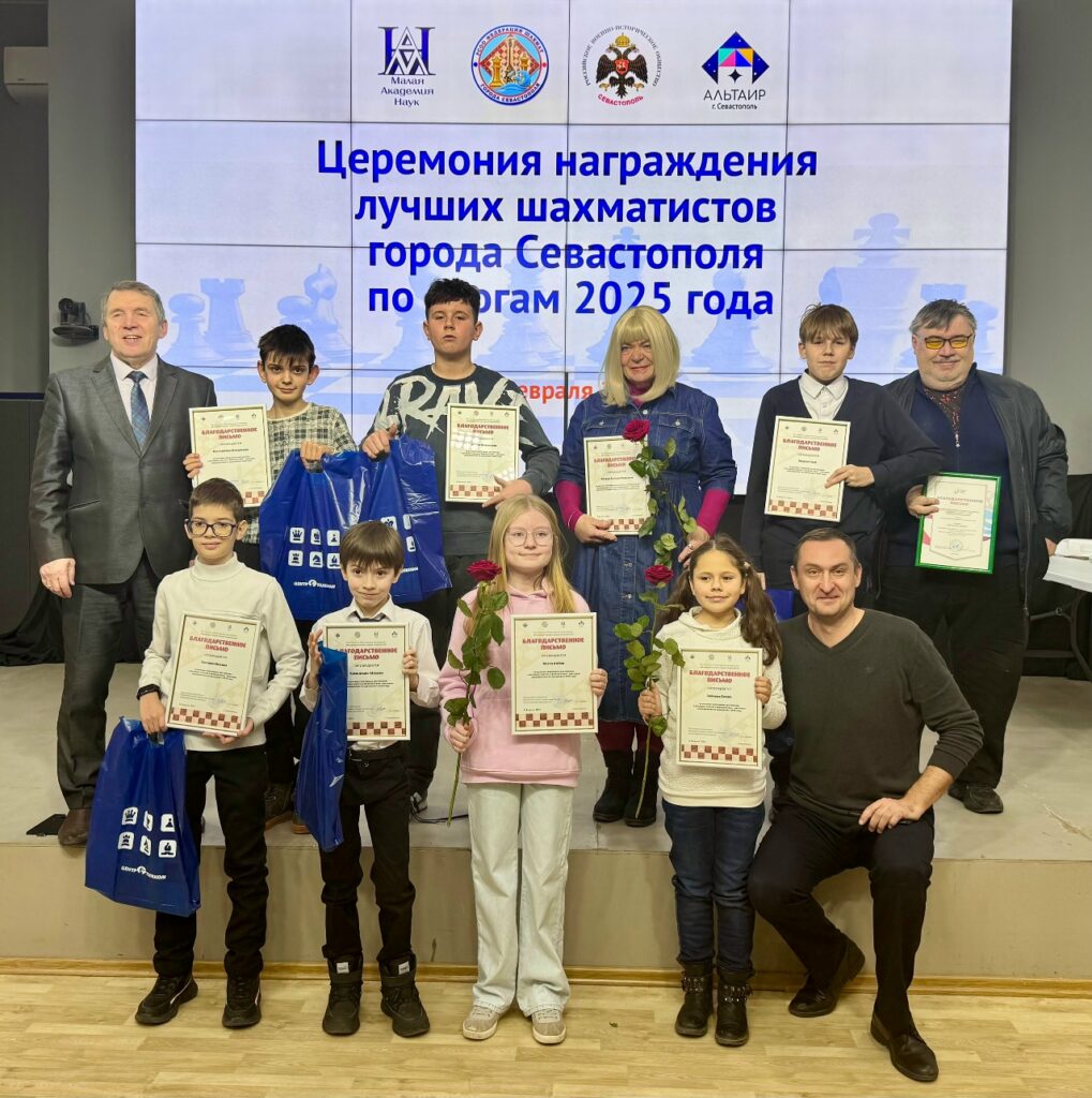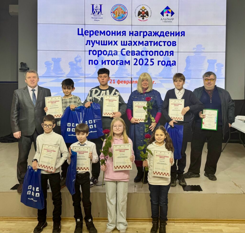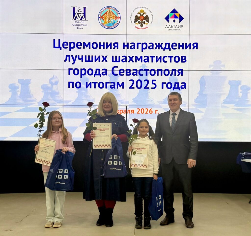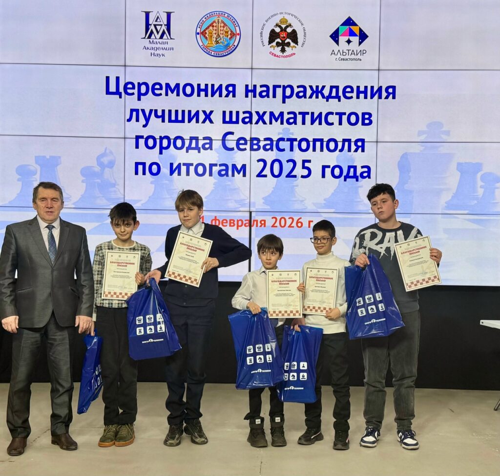 21 февраля 2026 года, в канун празднования Дня защитника Отечества, в ГБОУ «Центр дополнительного образования «Малая академия наук» прошла Церемония награждения лучших по итогам 2025 года, за активную работу по развитию шахмат в городе Севастополе и спортивные достижения среди детей и молодежи до 16 лет.